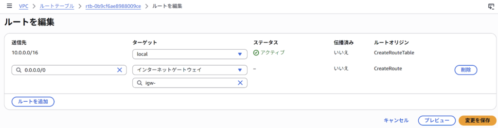 各サブネットには必ず1つのルートテーブルを紐付ける必要があり、この設定一つでそのサブネットがパブリックになるかプライベートになるかが決まる、非常に重要なコンポーネントです。